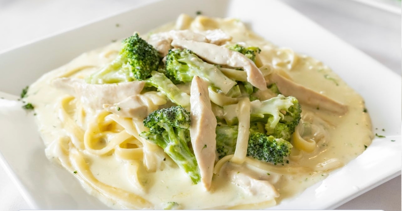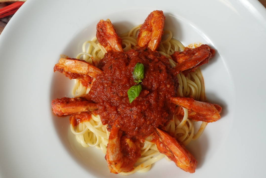 butter, mushrooms, herbs,marsala wine. pasta is served with tomato sauce.