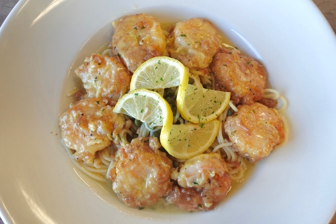 breaded shrimp topped with mozzarella and sauce