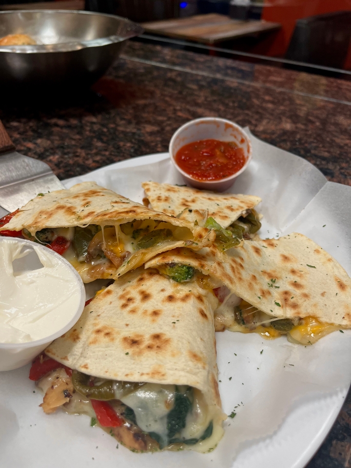 broccoli, fried onions, green peppers, mushrooms and spinach. served with fries.