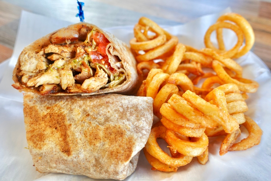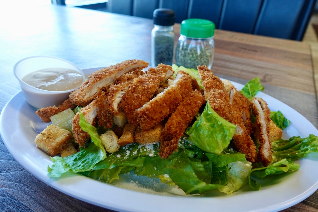 grilled chicken, romaine lettuce, grated cheese, caesar dressing. served with fries