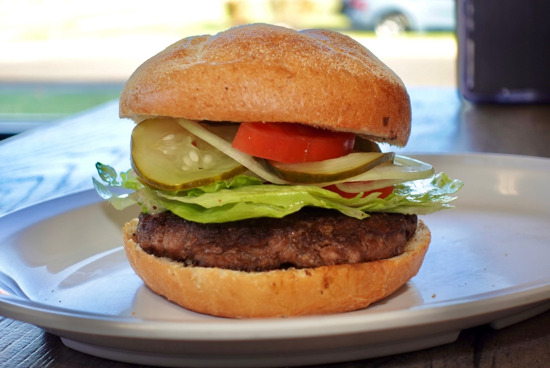lettuce, tomatoes, onions, pickles. served with fries.