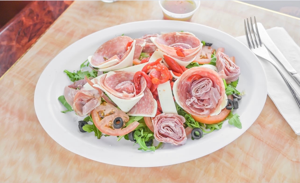 proscuitto, salami, fresh mozzarella, arugula, tomatoes, black olives, roasted peppers
