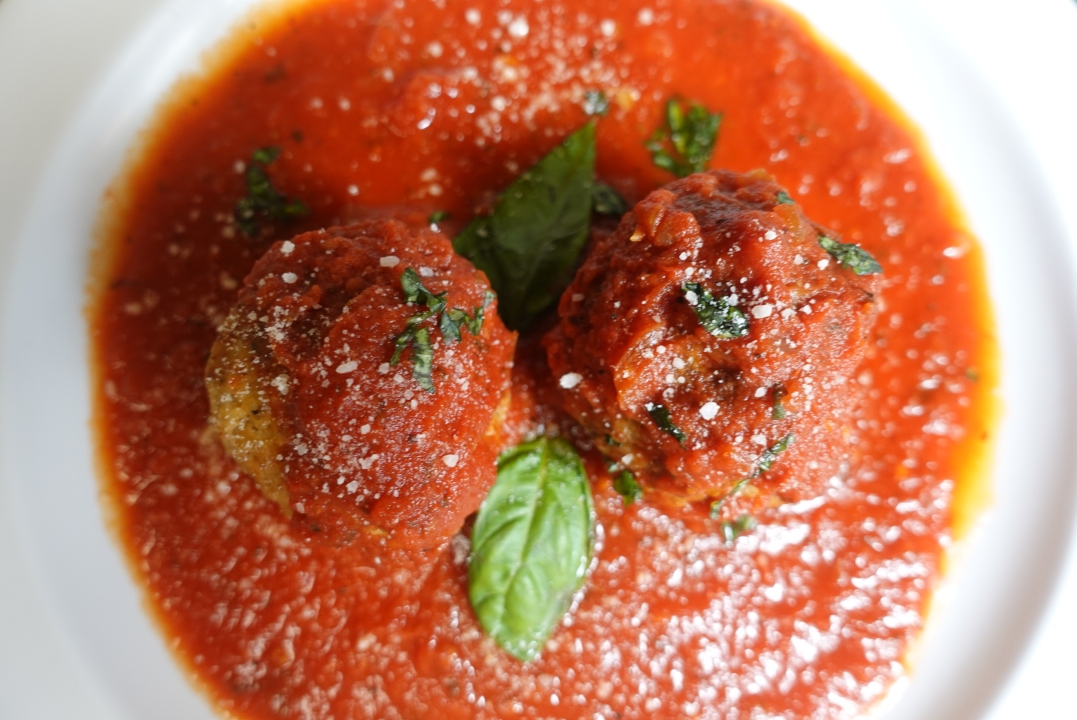 meatballs topped with mozzarella cheese and sauce